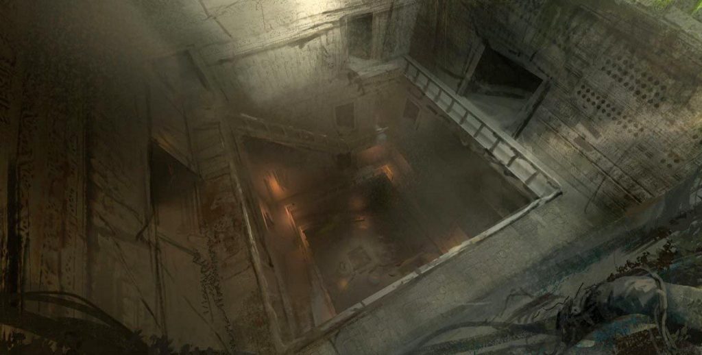 Erachter bevind zich weer een deur. Nokk en Corrin doen een check op traps. Ze zien een naad lopen van waar ze staan tot aan de deur. Het lijkt erop dat deze zou kunnen inklappen als val. Nokk loopt langs de muren richting de deur.