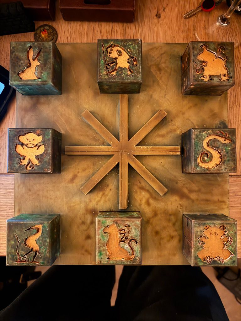 Wulfgar stopt de kubussen in de deur. De dieren net zo tegenover elkaar als in de gang. Als hijj de laatste erin stopt lichten ze op en ze verdwijnen allemaal. Ook de kubus met de slak die niet gebruikt is. De deur gaat open.